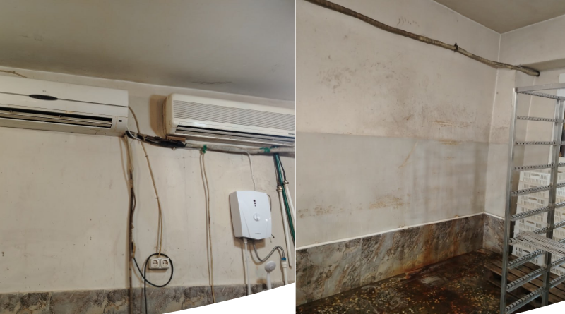 Ստուգման ընթացքում պարզվել է, որ հատակներն ու պատերը պատրաստված չեն եղել այնպիսի նյութերից, որոնք հնարավոր է հեշտությամբ լվանալ կամ ախտահանել։