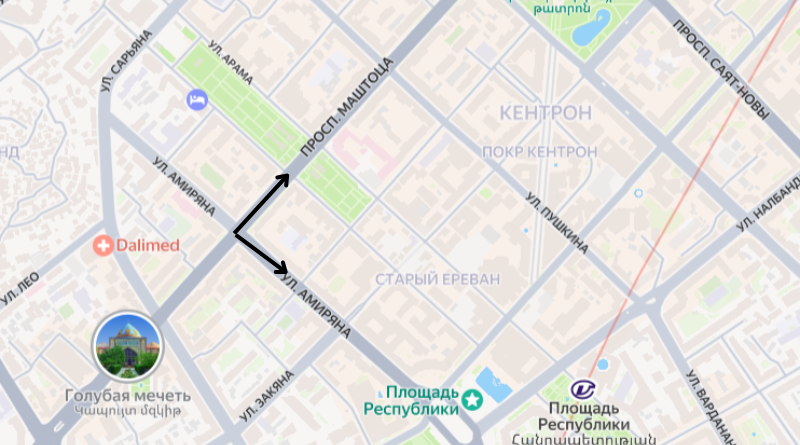 On Mashtots Avenue, in the direction coming from Pushkin Street, vehicles in the third lane will be allowed to proceed straight or turn left. When making a left turn from Mashtots Avenue, drivers must yield to vehicles traveling straight on Mashtots Avenue and to oncoming traffic when turning left from Amiryan Street.