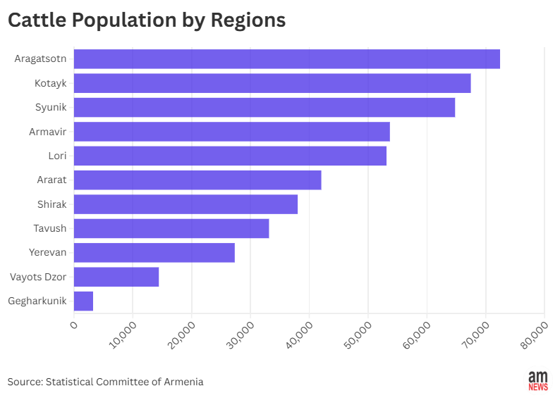 Gegharkunik region leads Armenia in terms of the number of cattle.