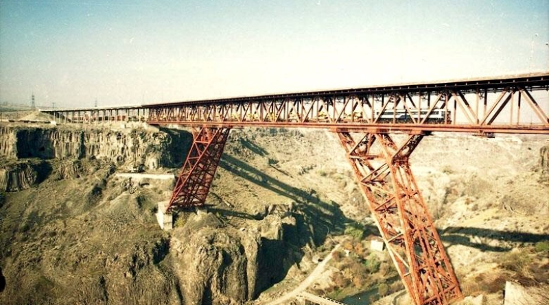 The Nor Hachn bridge is the longest bridge in Armenia. It was commissioned in 1981. The upper deck of the two-story bridge is used by automobiles and trailers, while the lower deck is used by the railway.
