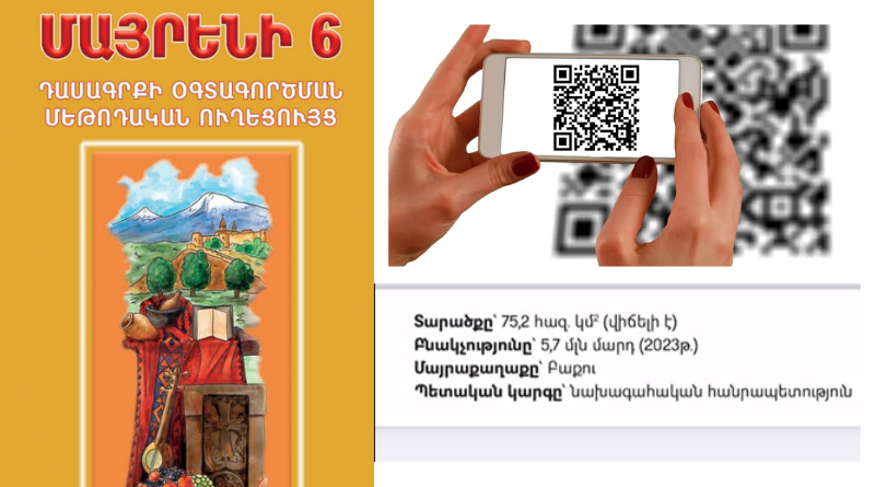 Newly published book batches in Armenia are constantly at the center of scandals. If previously the cover of the “Native Language 3” textbook featured a burning Armenian flag, now citizens are reporting that by activating the QR code on the first page of the “Native Language 6” textbook, one can access a section providing information about Azerbaijan. Specifically, it mentions Azerbaijan’s territory, population, government structure, and capital city.
