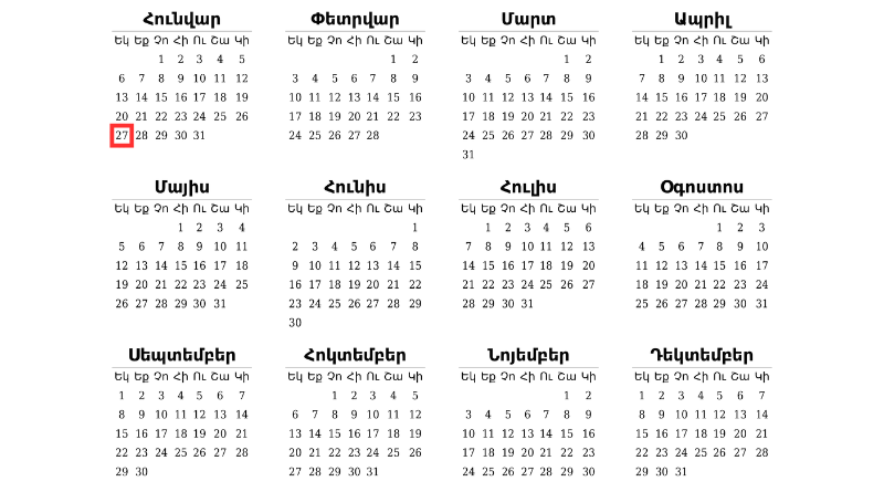 Read MoreПравительство РА утвердило решение, согласно которому 27 января станет «Днем памяти и почитания павших за Родину» и будет объявлено нерабочим днем