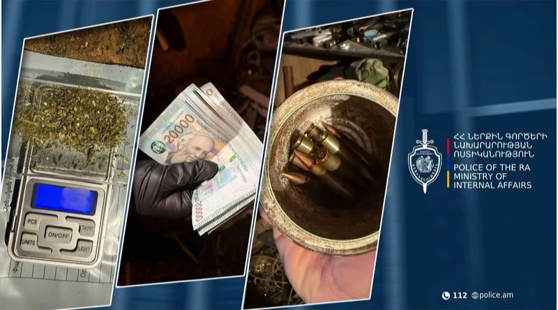Զննության արդյունքում տղամարդու բնակության հասցեում հայտնաբերվել է 1 միլիոն 120 հազար դրամ, մարիխուանա տեսակի թմրամիջոց և ինքնաձիգի փամփուշտներ: Նախաքննությունն ընթացքի մեջ է։