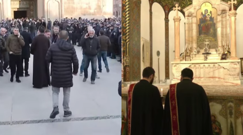 Մայր Աթոռի տարածքում կենտրոնացված են մեծ թվով ոստիկաններ՝ իրավիճակը վերահսկելու և հնարավոր բախումները կանխելու նպատակով: ՀՀ ոստիկանապետ Արամ Ղազարյանը նշեց, որ անհրաժեշտության դեպքում ոստիկաններն ուժ կկիրառեն սադրիչ գործողություններ իրականացնող անձանց հանդեպ: