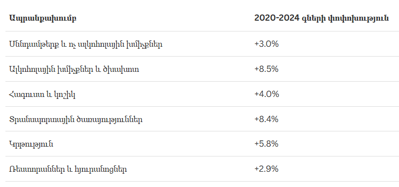 Չնայած որոշ ապրանքների գները նվազել են, ընդհանուր գնաճը, հատկապես ծառայությունների ոլորտում, ավելի մեծ ազդեցություն է թողել քաղաքացիների ծախսերի վրա։