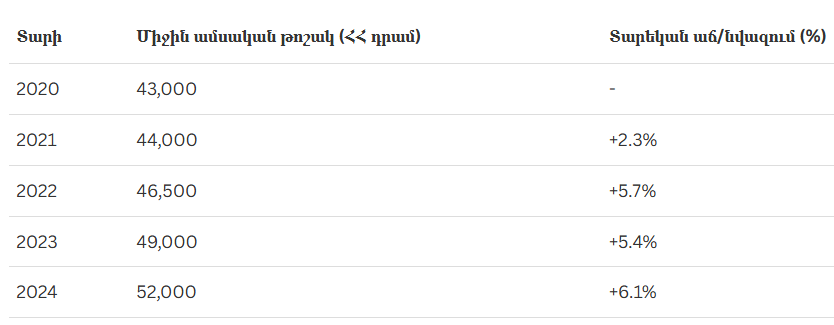 Վերջին 5 տարիների ընթացքում թոշակներն ընդհանուր առմամբ աճել են մոտ 9,000 դրամով կամ 20.9%-ով: