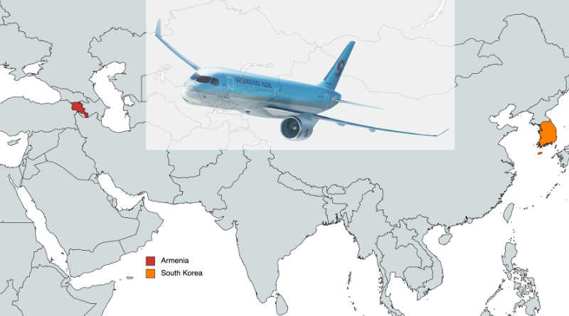 Հարավկորեական Korean Air ավիաընկերությունը սկսել է չարտերային ուղիղ չվերթներ Սեուլ-Երևան-Սեուլ երթուղով: Այս մասին տեղեկացնում է Միավորված տուրիզմի ֆեդերացիան (United Tourism Federation) Facebook-յան իր էջում: